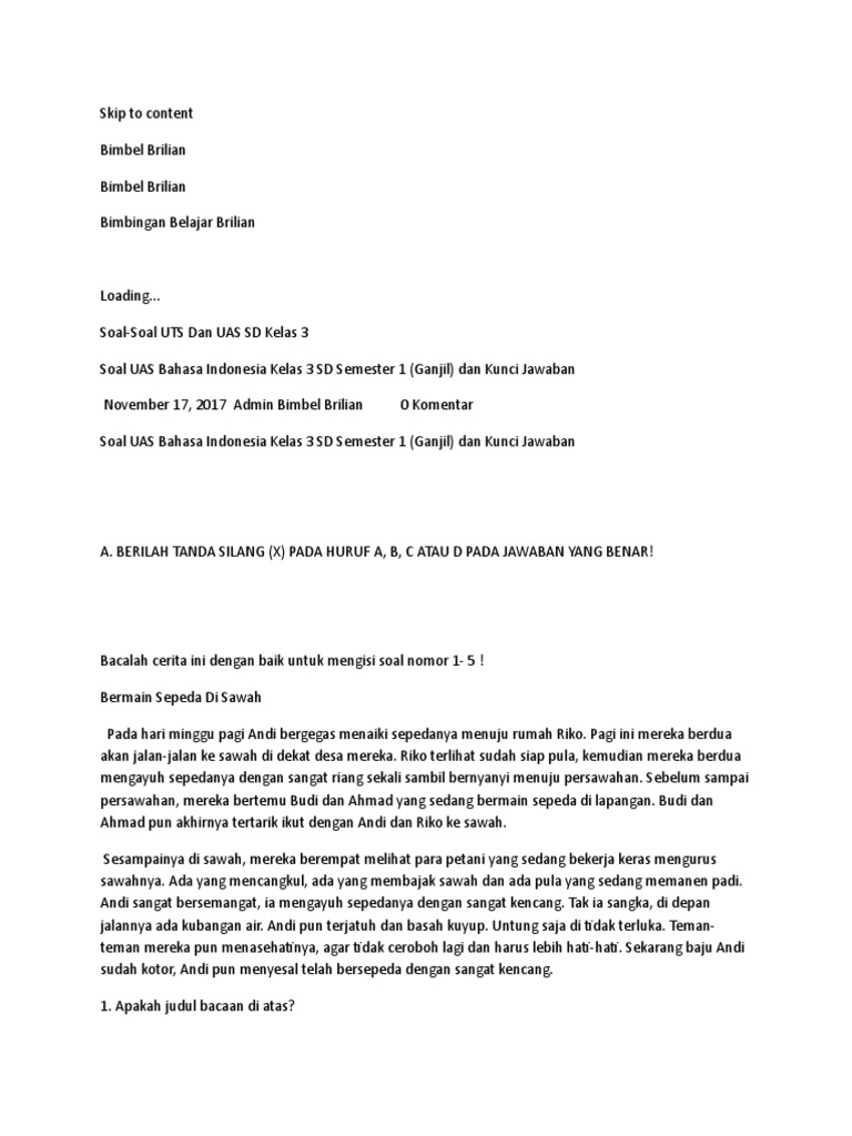 Soal Bahasa Indonesia Kelas 6 Bimbel Brilian : Contoh Soal Ujian Sekolah Sd Kelas 6 Bahasa Indonesia Donskiey - Maybe you would like to learn more about one of these?