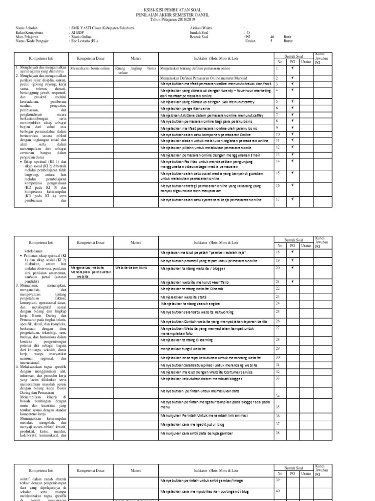 Soal bisnis online kelas 12 semester 1.